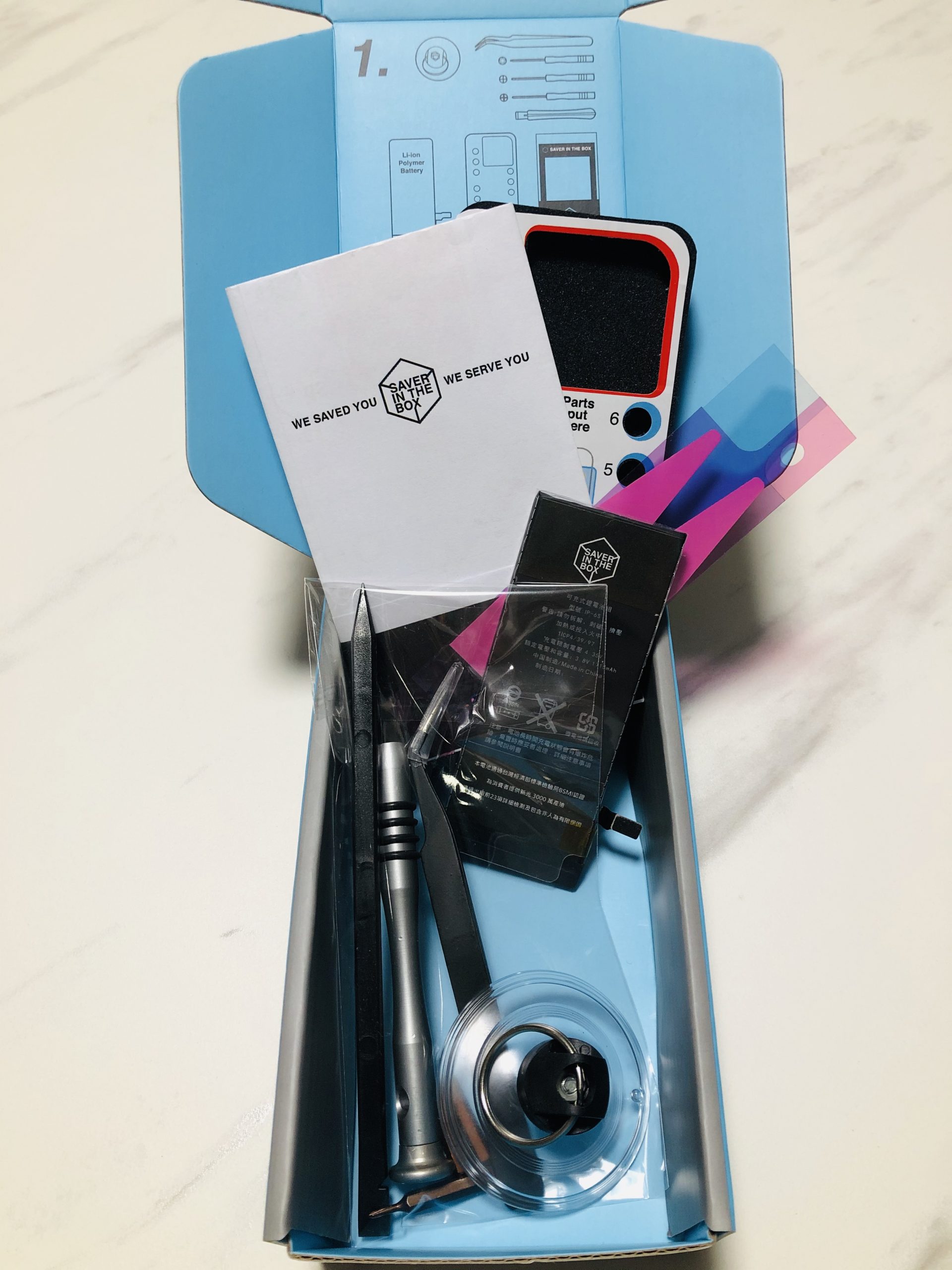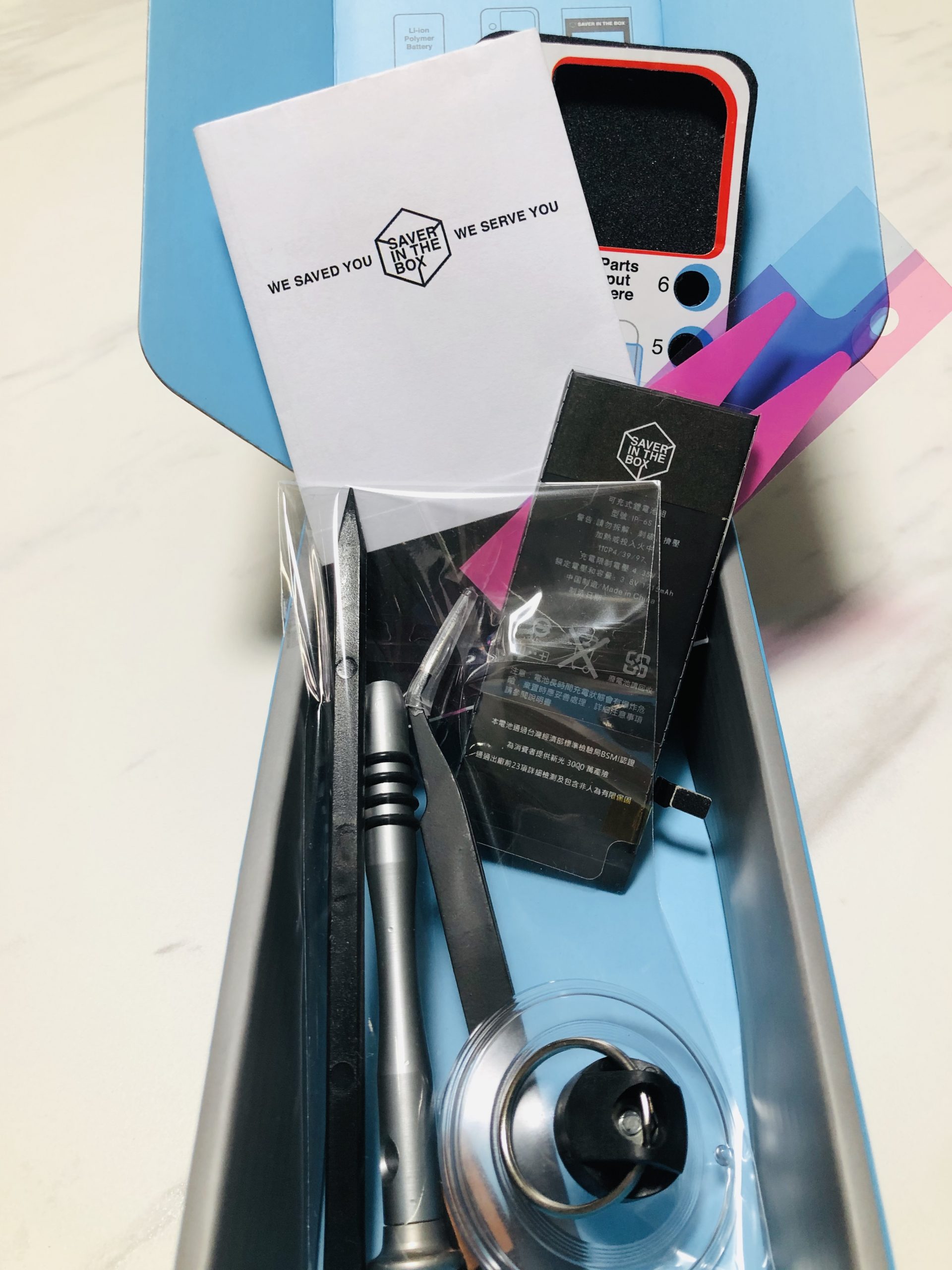 - 完整工具組合及維修說明 (*工具組保證非二手料品,但例如吸盤、螺絲外觀上可能會有存放痕跡,不影響使用)