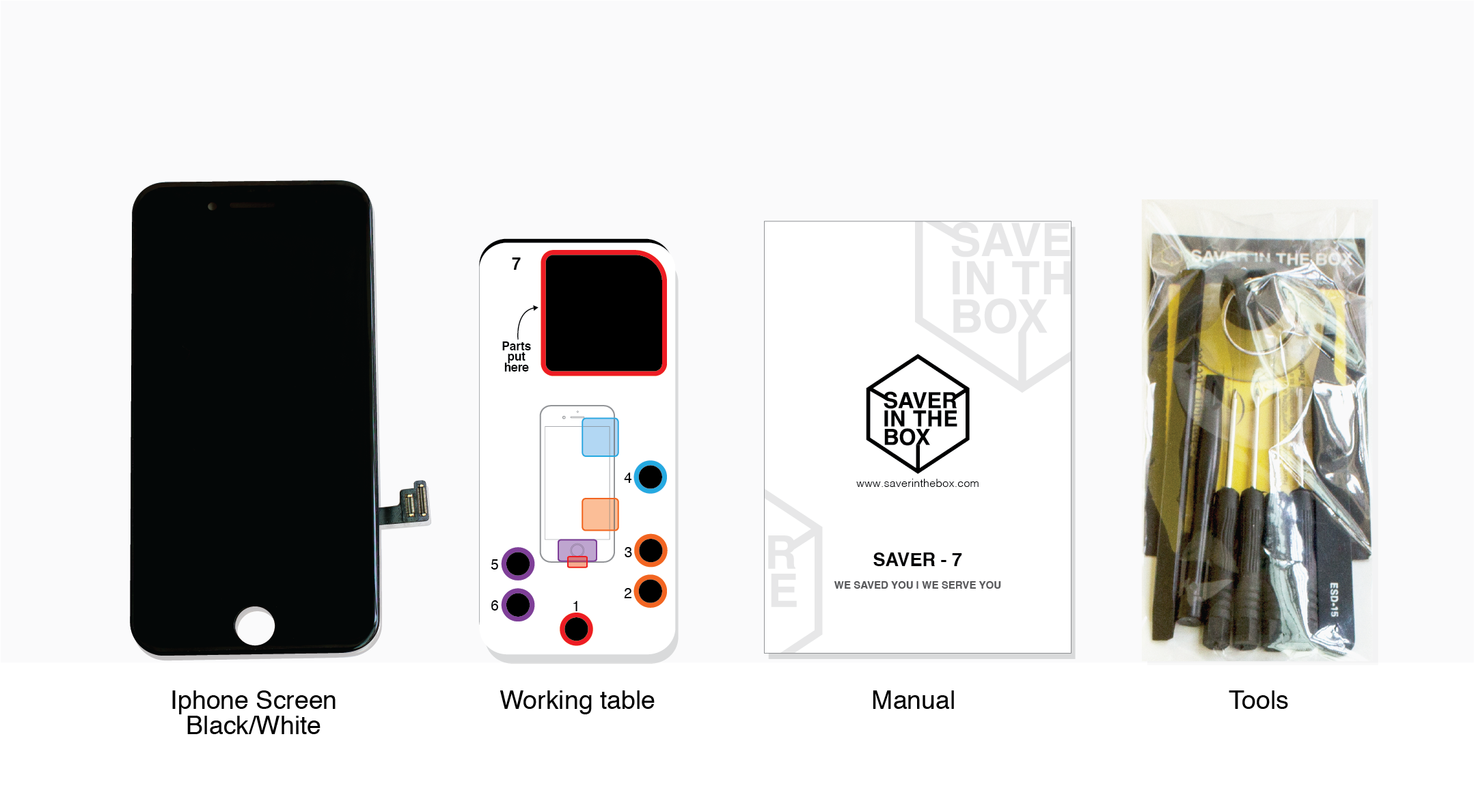 - 完整工具組合及維修說明 (*工具組保證非二手料品,但例如吸盤、螺絲外觀上可能會有存放痕跡,不影響使用)